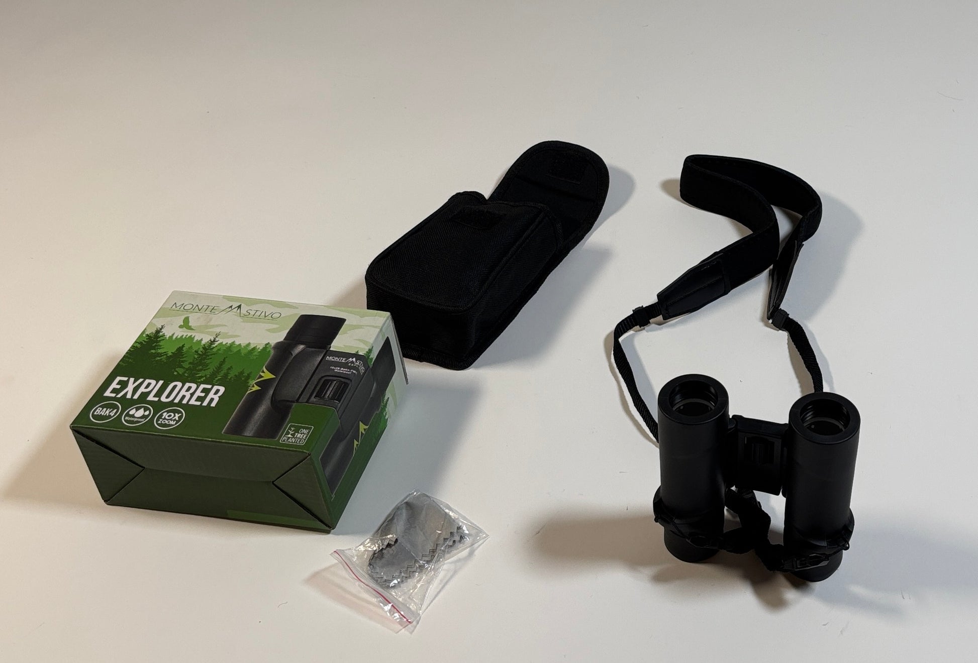 Mit Zubehör: Das Set enthält eine Gürteltasche für sicheren Transport, einen Halsgurt mit Schnellverschluss für einfache Handhabung und ein Reinigungstuch zur Pflege der Linsen.
